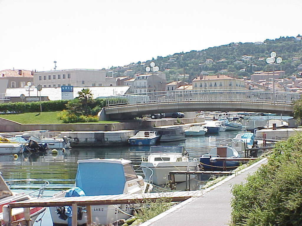 Montpellier, France/montpellier500Previous | Home | NextThis is the north side of Sète. The previous salt marshes immediate to the village of Sète have been drained and are now occupied by a system of navigational canals. Sète has grown to a thriving recreational seaport village. The view is southwest toward the hill (right part of photo) called "Le Site des Pierres Blanches" ("Site of the white rocks"). |