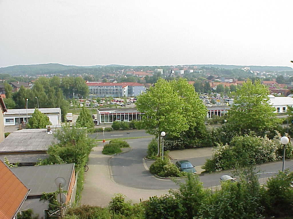 Salzgitter, Germany/salzgitter700Previous | Home | NextThis is a vantage point similar to that in the 1905 painting. At first glance, no similarities can be drawn, owing to the extreme congestion which obscures the view -- covering, for example the railroad tracks. However, close inspections shows St. Marie-Jacobi Kirche, barely visible just to the right of center. See next photo for closer view. |