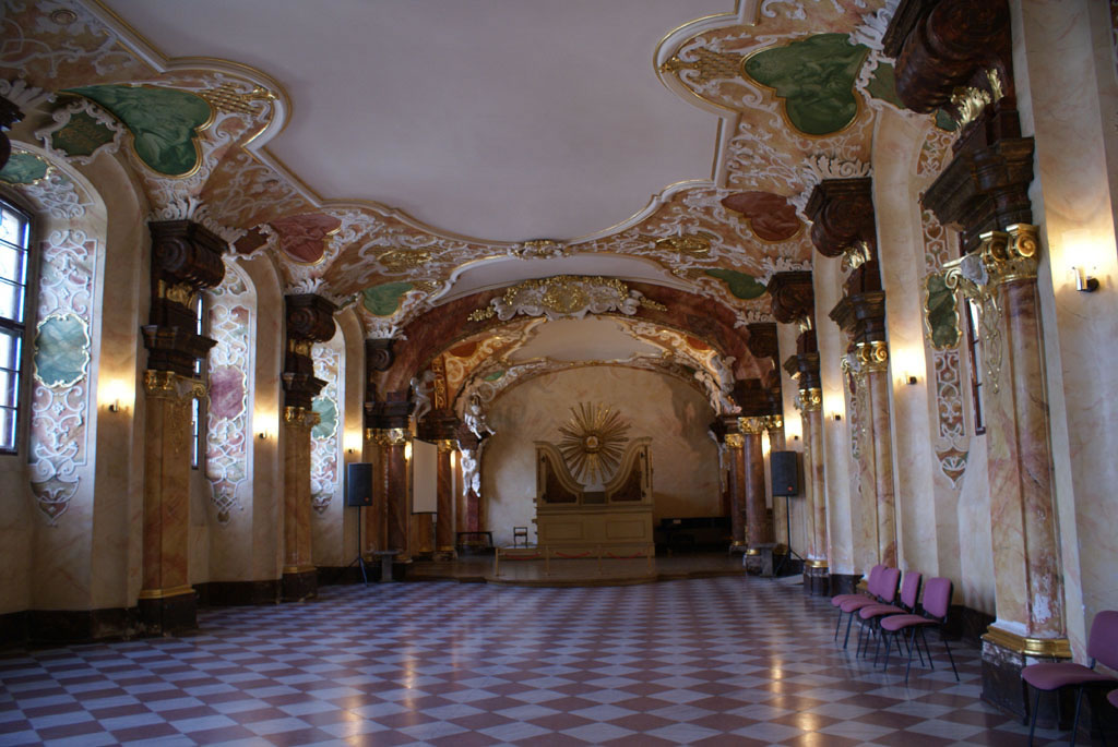 Inside the university building today. The university building houses not only offices, but boasts its highlight: the Aula Leopoldina (Royal Court of Leopold), a beautiful baroque hall on the first floor which is used for conferences and ceremonies.