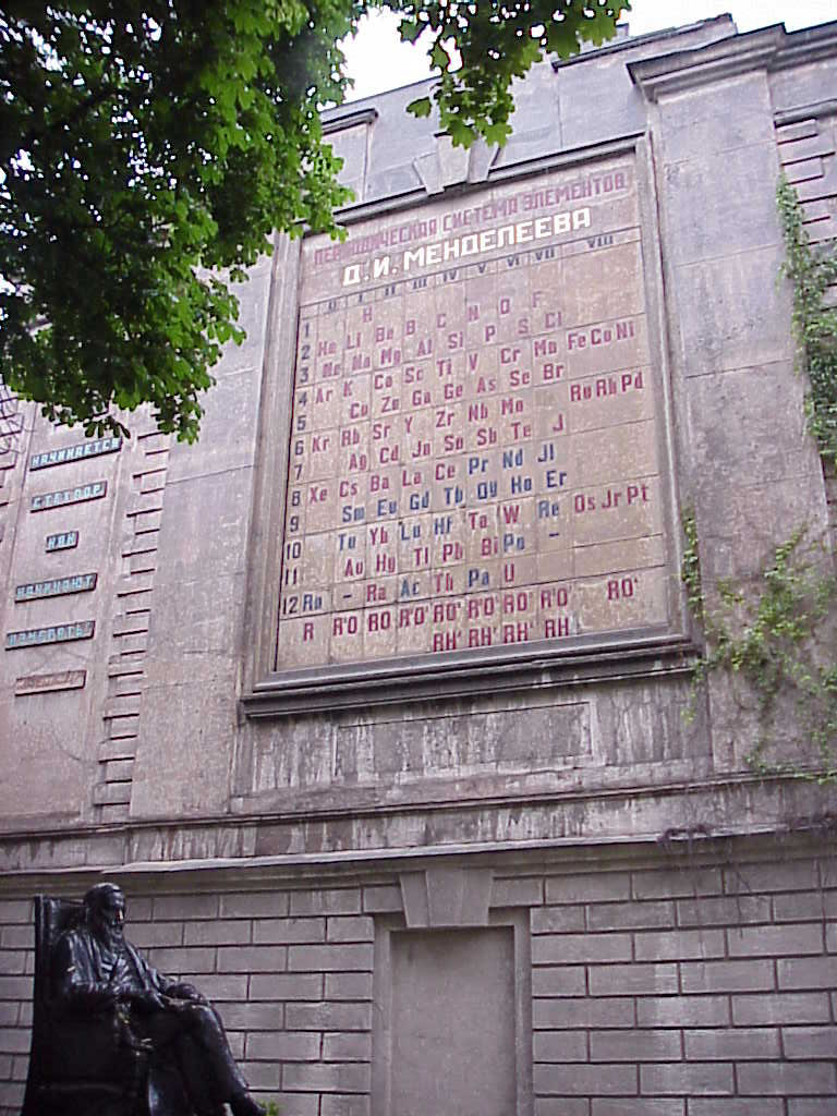 St. Petersburg, Russia/stpet210Previous | Home | NextBehind the statue, to the north, is the huge Periodic Table. This Periodic Table, erected in 1934, is the largest in the world. The elements in red were known during Mendeleev's lifetime (through 1907); the elements in blue were discovered since. |