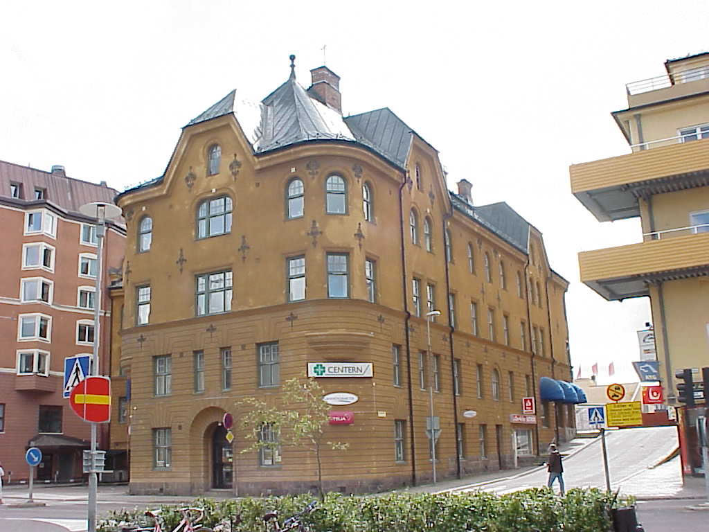 Falun, Sweden/falun019Previous | Home | NextLooking southward, this modern office building was the site of Gahn’s laboratory, at the corner of Bergskolegränd (running left and right) and Trotzgatan (running up the hill, diagonally right). Behind the office building is Åsgatan with its line of shops, where Sefström’s laboratory was located. |
