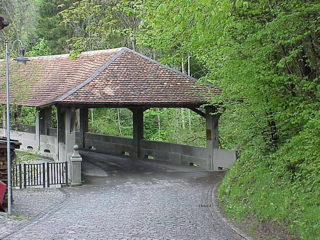 The covered bridge over the Sihl River. There is a plaque just at the entrance.