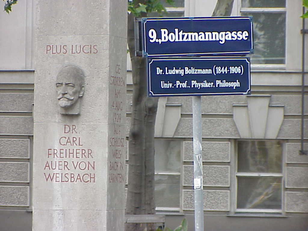 Closeup of the face of the monument. On front of the Denkmal is the relief of "Dr. Carl Auer von Welsbach," with his motto "Plus Lucis" ("more light"). Welsbach arrived at this motto, with his humerous observation that for him Latin was not the easiest subject.