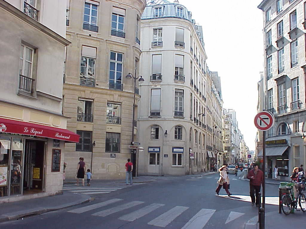 Back at the corner of Rue des Petits-Champs and Rue Radziwill -- this is the view looking the other direction, westward. An interesting plaque can be noted here (see next photo).