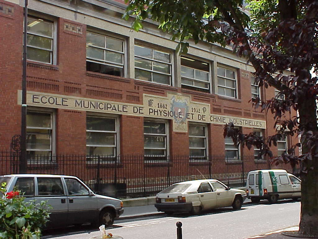 This is ESPCI, the École Supérieure de Physique et Chimie Industrielles -- which was originally called l'École Municipale de Physique et Chimie Industrielles (Municipal School of Industrial Physics and Chemistry), or commonly just l'École de Physique et Chimie Industrielles (EPCI), where the Curies did their famous research. The modern name (ESPCI) was adopted in 1948. The original school was founded in 1882. This is the north side of the school, on Rue Pierre Brossolette (continuation of Rue Érasme). The view is south.