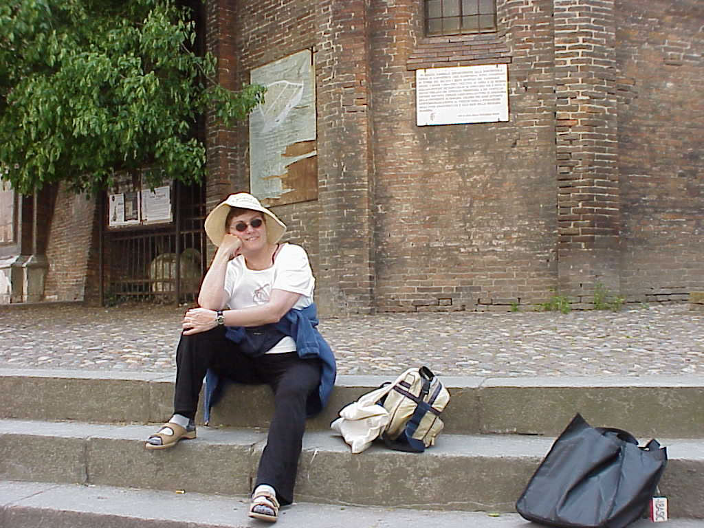 On the front of the church is a deterioated map representing Ferrara 500 years ago (left) and a historical plaque (right).