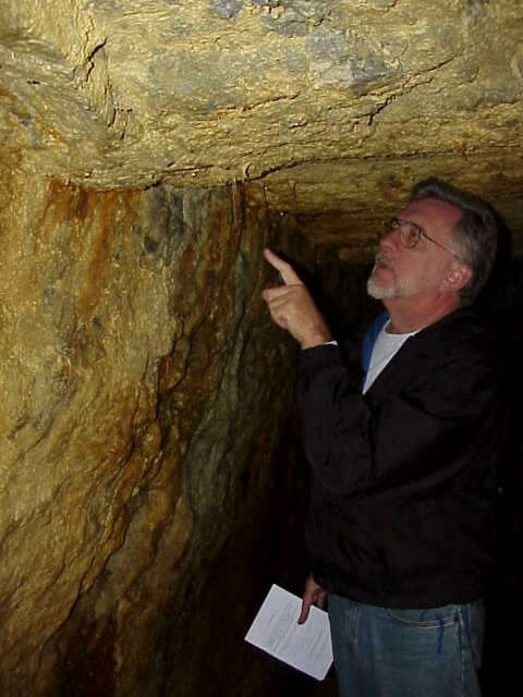 Fascinating stains, colors, and speckles coat the walls of the mine.