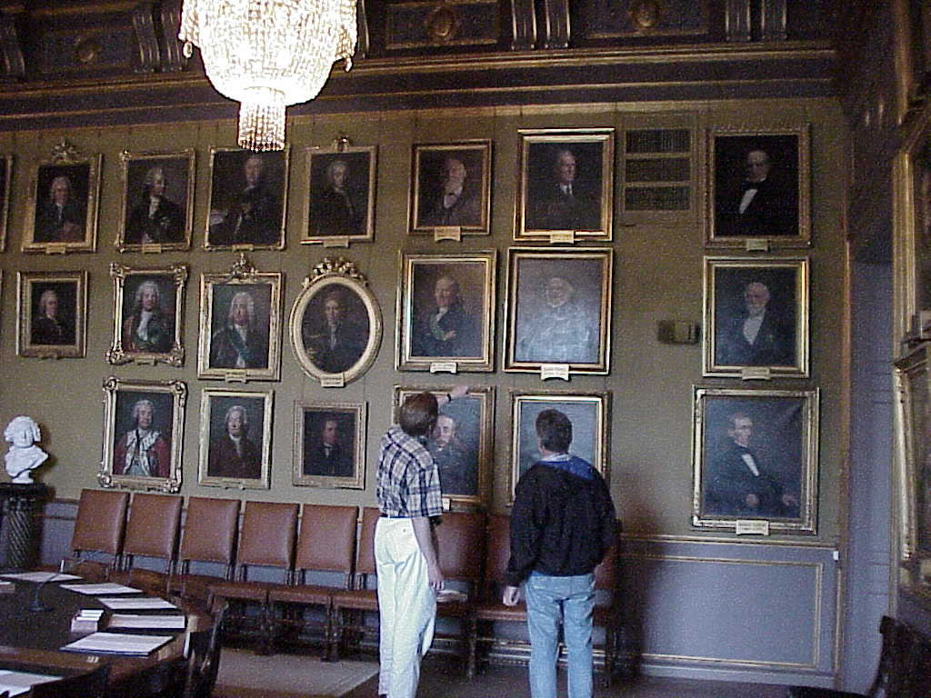 Dr. Karl Grandin (left), Director of the Center for the History of Science at the Swedish Royal Academy of Sciences, guides us through the gallery of portraits.