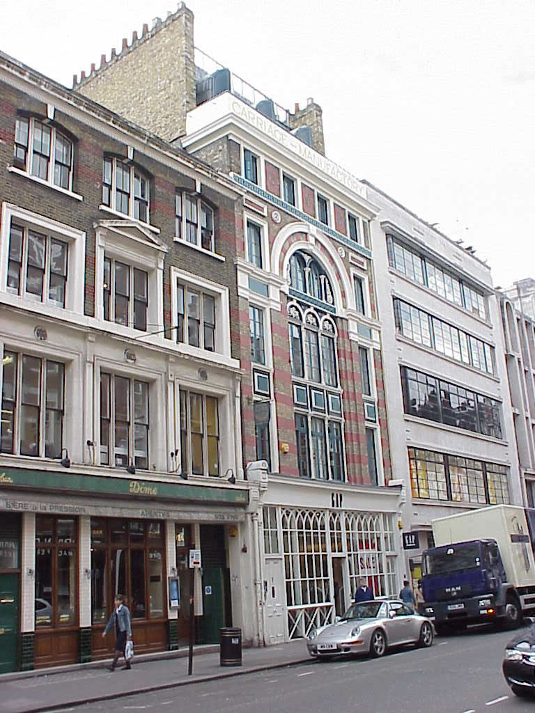 Remnants of the historic coach-making still remain; look at the top of this building (see next photo), which is half-way down Long Acre.