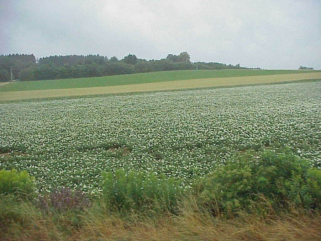 Taking the train into München ("Munich" to Americans), the blooming potato fields show why Kartoffeln (potatoes) are so popular a specialty in Germany.